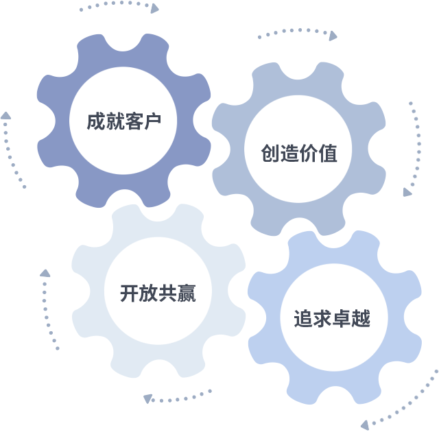 成就客户是一切决策的出发点,创造价值是衡量所有工作的标准,追求卓越是j9国际做事做人的态度,开放共赢是j9国际的格局也是最终的结果。价值观的齿轮环环相扣,推动着组织里的每个人不断向前。